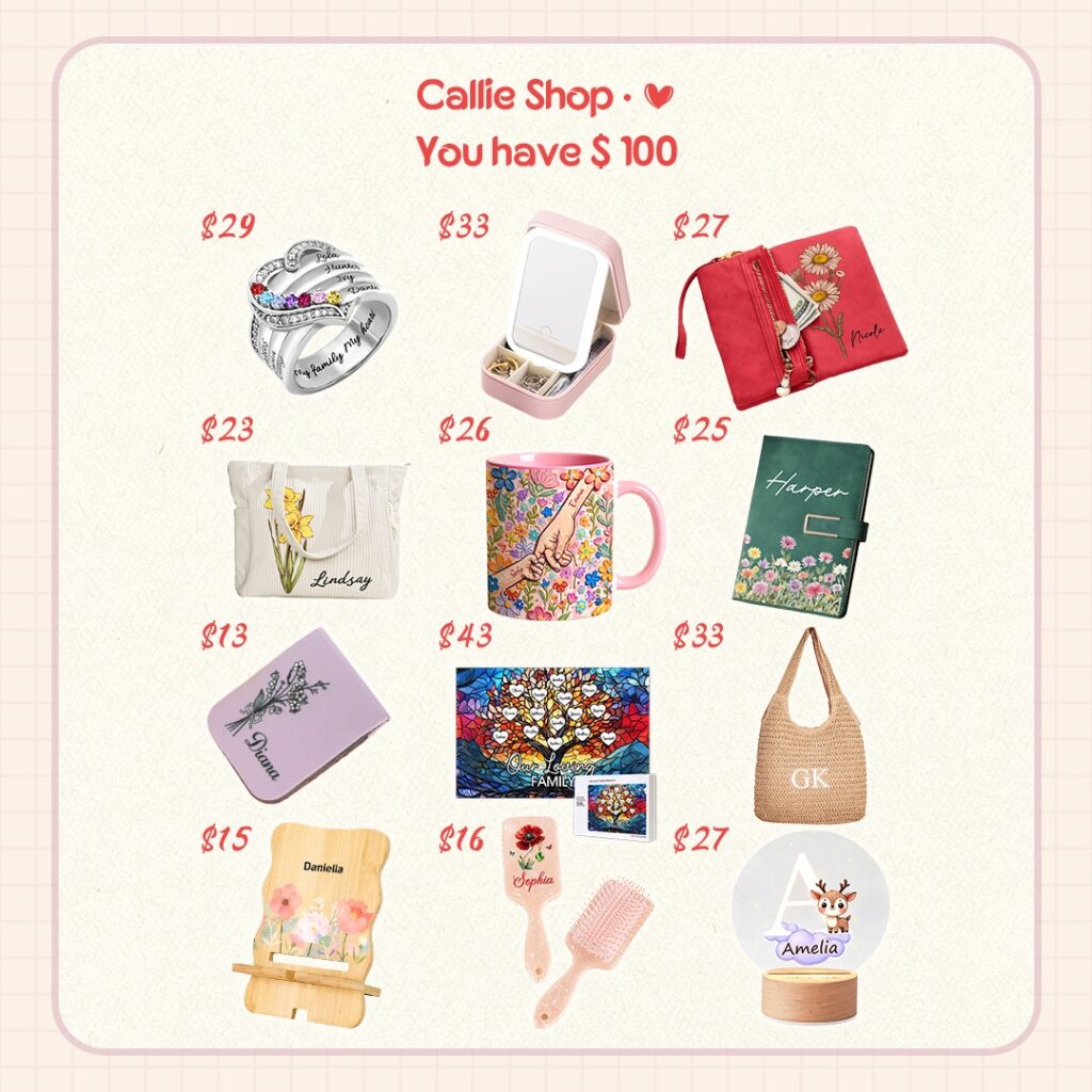 Callie ist nicht bloß ein weiterer Online-Geschenkeshop – es ist eine Plattform, die ganz auf Personalisierung und emotionalen Wert ausgerichtet ist. Anstatt austauschbarer Massenware ermöglicht es Callie seinen Kunden, Artikel mit Namen, Fotos, Daten und sogar bedeutungsvollen Botschaften ganz individuell zu gestalten. So verwandeln sich Alltagsgegenstände in geschätzte Erinnerungsstücke.